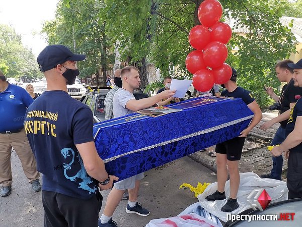 У Миколаєві представники “Національного корпусу” принесли під офіс Партії Шарія труну з портретом прокремлівського блогера. Про це пише «Газета».
