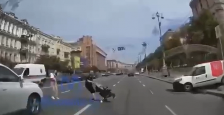 На Хрещатику пара з коляскою вибігла на дорогу, ледь не спровокувавши дорожньо-транспортну пригоду. Відео інциденту з камери відеореєстратора опублікував Telegram-канал «Магнолія ТВ» у п’ятницю, 20 серпня.