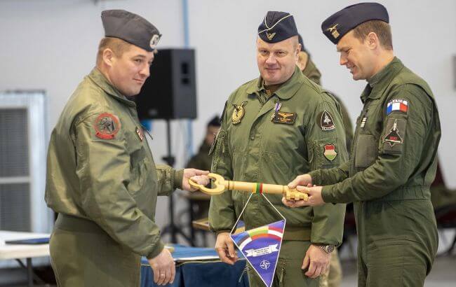 У Литві розміщено чотири винищувачі F-16 ВПС Польщі, а місія з патрулювання посилюється також чотирма французькими потужними винищувачами Rafale.