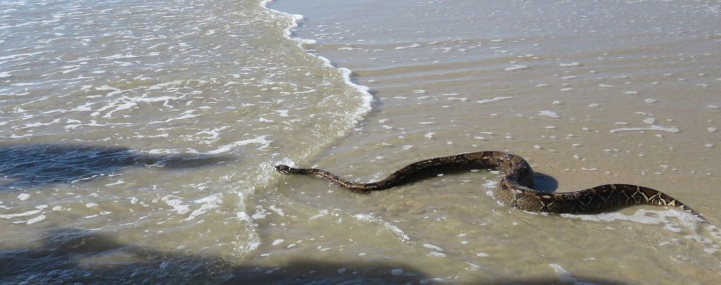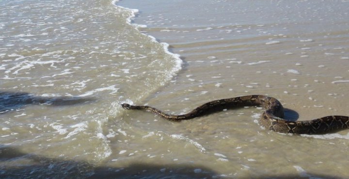 За словами чоловіка, місцеві жителі розповіли йому, що змії живуть в очеретах, у лимані. А коли він сильно прогрівається, то “гадам” бракує їжі, і вони повзуть через смужку пляжу в море, де “полюють” на бичка або іншу дрібну рибку. З такою змією, у якої була в пащі риба, і поплавав киянин.