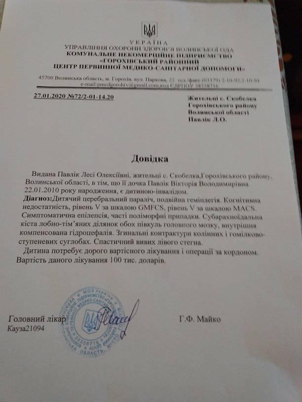 Номер телефону мами хворої дівчинки – 097 873 16 63, Павлік Леся Олексіївна.