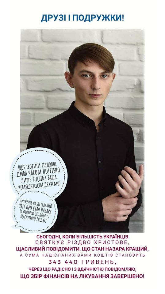 Рідні та близькі хлопця з вдячність повідомляють про те, що збір фінансів на лікування – завершений.