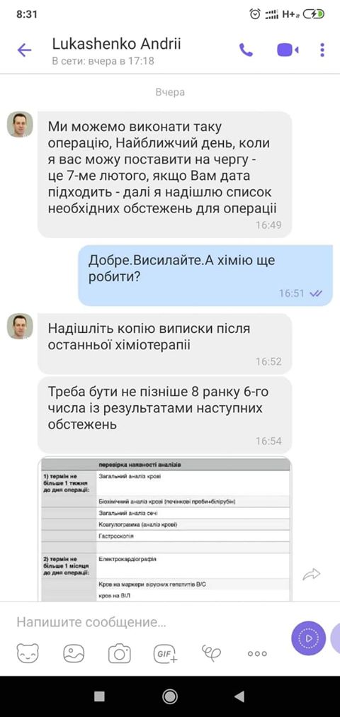 Операцію призначили на 7 лютого. Втручання необхідне лапароскопічне, яке коштує недешево, так як обладнання і інструменти дорогі.