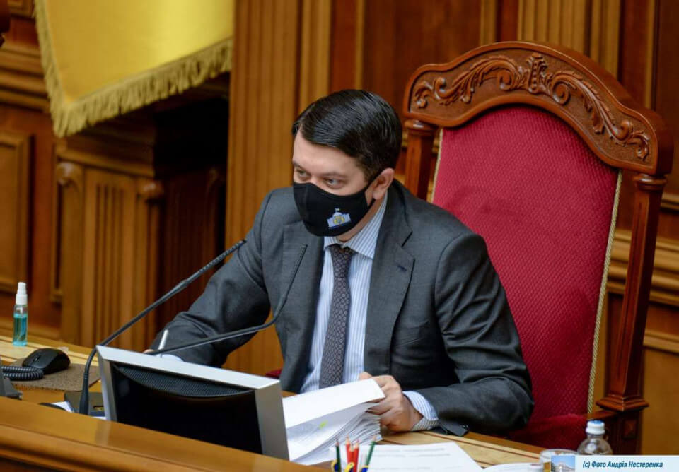«Пропонуємо винести на розгляд ВР питання про включення до порядку денного сесії ВР питання про відкликання з посади голови ВРУ Разумкова Дмитра Олександровича. Пропонуємо, відповідно до частини 1 статті 77 регламенту Верховної Ради України, призначити розгляд питання про відкликання голови ВРУ з посади на 7 жовтня», – заявив голова партії «СН» Олександр Корнієнко.