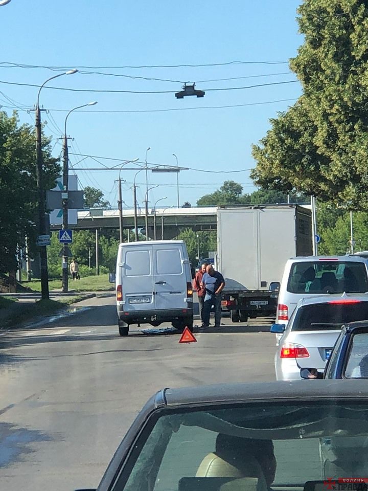 На вулиці Ківерцівській біля моста зіткнулись два автомобіля Mercedes . У одної із автівок постраждала передня частина машини.