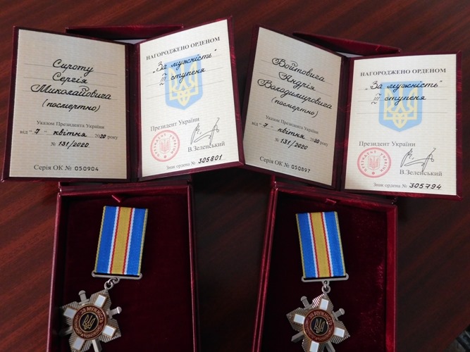 Указом Президента України №131/2020 від 07 квітня 2020 року за самовіддане служіння Українському народові, особисту мужність, виявлену у захисті державного суверенітету та територіальної цілісності України орденом «За мужність» III ступеня (посмертно) нагороджено молодшого сержанта Войтовича Андрія Володимировича та старшого солдата СИРОТУ Сергія Миколайовича.