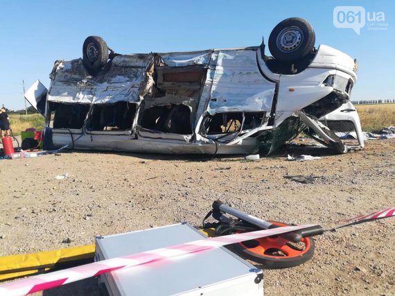Маршрутка везла відпочивальників із Кирилівки. Зіткнення сталося близько 14:00 на трасі Харків-Сімферополь. Від потужного удару мікроавтобус вилетів з дороги і перекинувся на дах. Вантажівка злетіла в кювет.