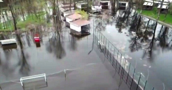 Столичний парк «Муромець» затопило через паводок. У мережі з’явилося відео, зняте за допомогою дрона, на якому видно, як сильно піднялася вода на території одного з найпопулярніших місць відпочинку киян. У воді опинилися альтанки, спортивні корти, магазини, кафе та ресторанчики.
