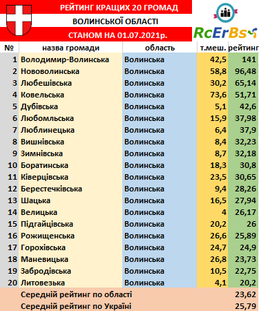 Рейтинг сформований за результатами обробки наданої громадами інформації.
