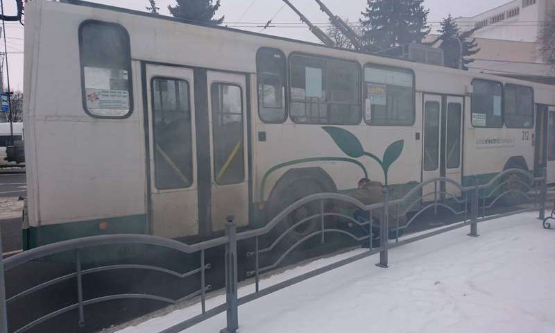 Наразі водій від’єднав роги від електроліній, аби інші тролейбуси могли вільно рухатися, та чекає на приїзд аварійної служби.