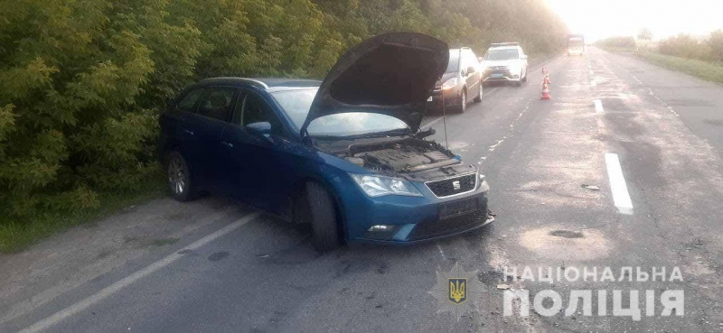 Поліцейські попередньо на місці події встановили, що 49-річний киянин, водій автомобіля «SEAT Leon» з невстановлених поки причин допустив виїзд на смугу зустрічного руху, де зіткнувся із автомобілем «Renault Kangoo» під керуванням 66-річного жителя села Зоря. Від удару останній транспортний засіб виїхав за межі проїзної частини та перекинувся.