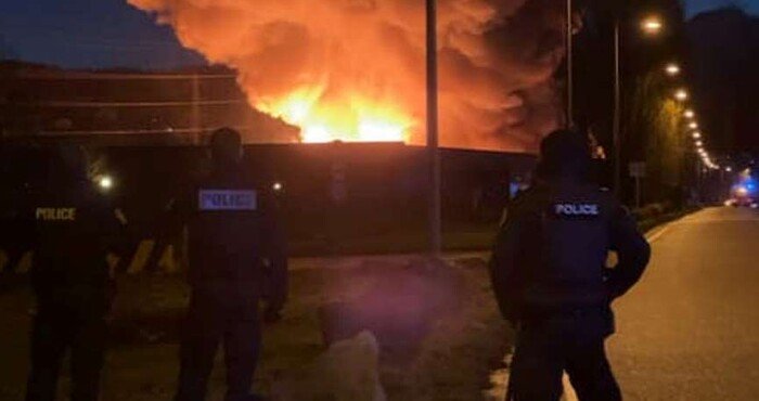 Пожежа розпочалася у частині будівлі площею близько 6 тис. кв. м, де зберігається 8 тис. автомобільних літієвих батарей. Після цього вогонь перекинувся на приміщення компанії DistriCash площею теж близько 6 тис. кв. м, де зберігалося 70 тис. автомобільних шин.
