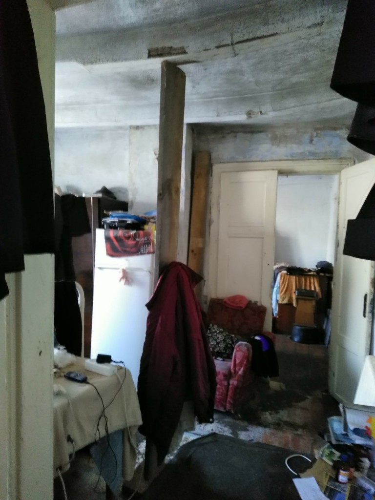 Коли заходиш у маленький темний коридорчик, відчуття таке, ніби падаєш в яму: так хитається геть прогнила підлога, що важко встояти на ногах. Далі – крихітна кухня.