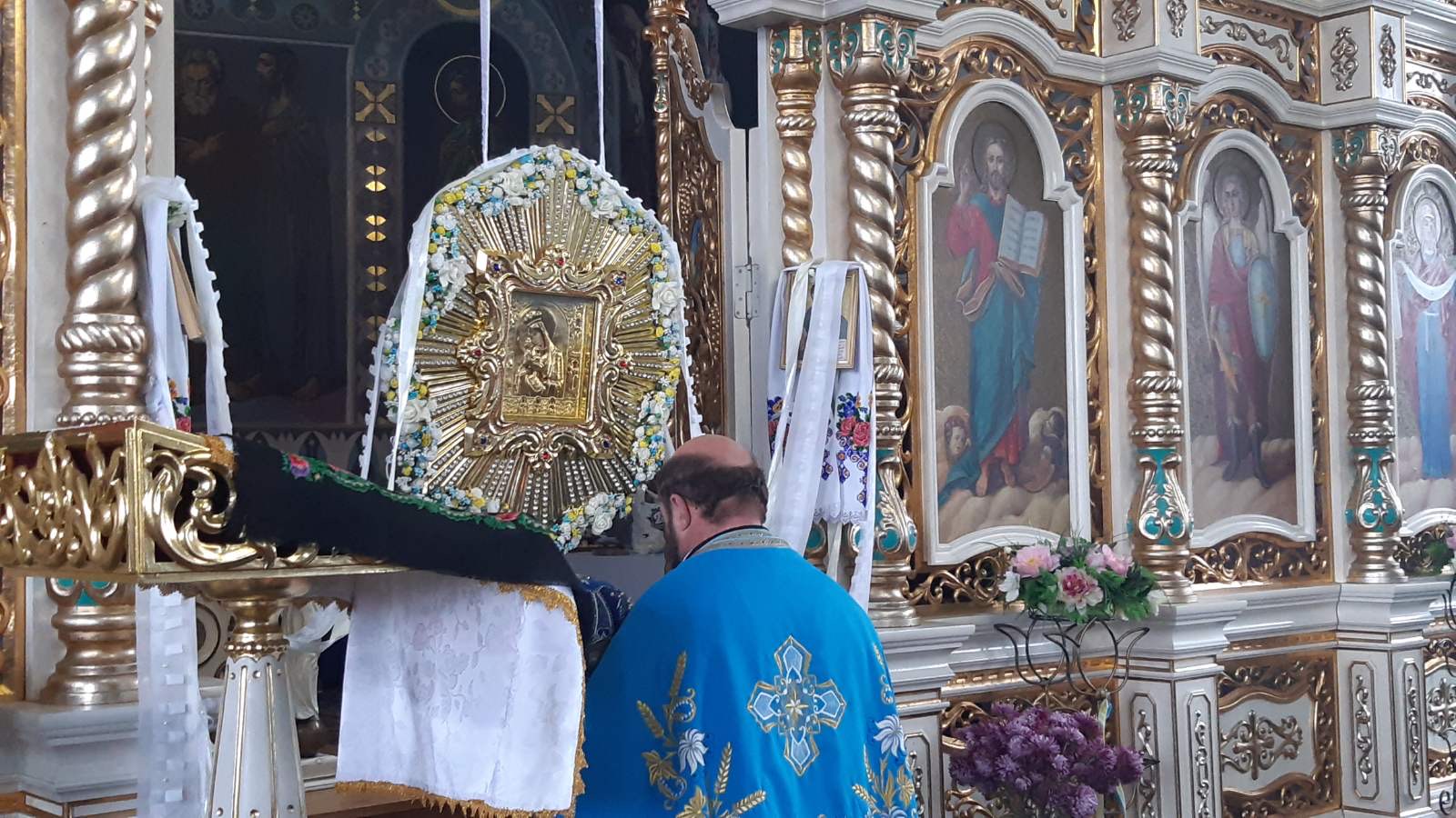 Наприкінці отець Юрій благословив усіх присутніх. Прихожани поклонилися іконі Божої Матері, яку цього дня було приспущено.