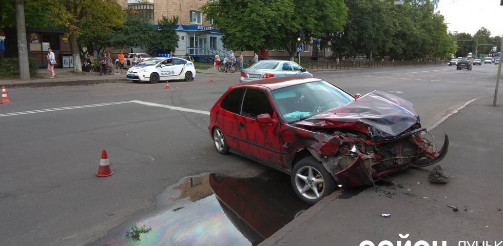 Від зіткнення в сірої Renault Clio постраждала ліва передня частина, крім того, видно, що лобове скло з правого боку пошкоджене зсередини. Інший учасник ДТП – червоний легковик з аерографією – винесло на смугу протилежного руху, зупинив його тротуар. В автівки сильно пошкоджена передня частина: від бамперу нічого не залишилось, кришка капоту і передні крила, фари розтрощені тощо.