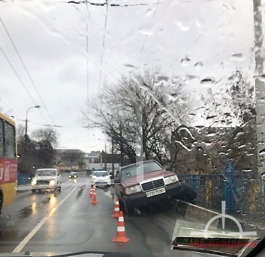 За інформацією очевидців пригоди, водій автомобіля Mercedes не впорався з керування транспортного засобу та “вискочив” на відбійник.