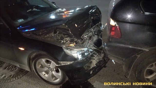 Як повідомили Інформаційному агентству Волинські Новини очевидці аварії, водій автомобіля BMW X5 почав зупинку на червоне світло світлофора, коли у нього на великій швидкості в’їхав легковик BMW. Після удару обидва автомобілі змістилися з місця удару на понад 10 метрів. На щастя на пішохідному переході у той момент нікого не було, відтак постраждалих у ДТП немає.