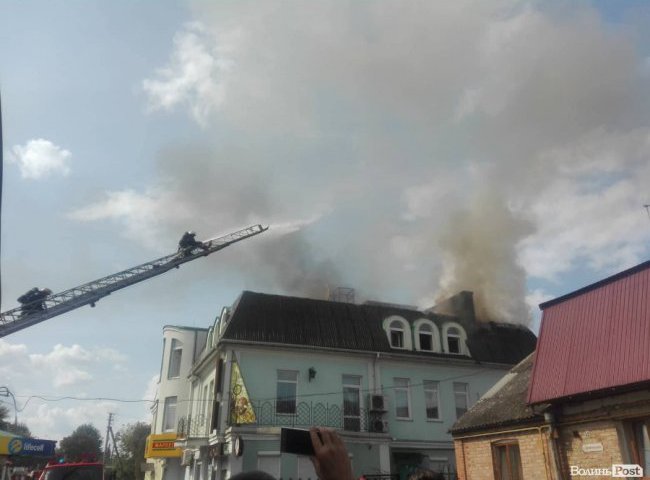 Значна частина покрівлі знищена вогнем. В диму – частина вулиці Ковельської. Пожежники та поліція поки не коментують ситуацію.