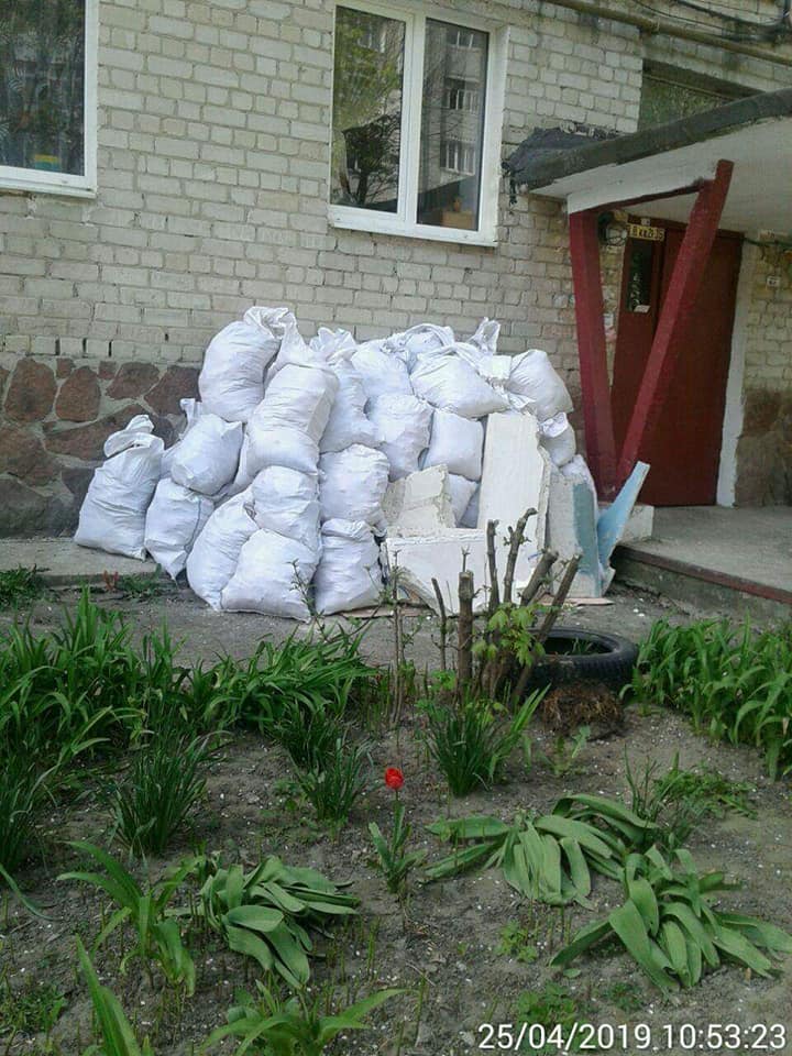 Це є порушенням підпункту 2.5.5.1.3 Правил благоустрою міста Луцька (заборонено складувати будівельні матеріали, конструкції, обладнання за межами будівельних майданчиків у невизначених для цього місцях). Після цього відповідальній особі видали припис на усунення порушення. 27 квітня порушення успішно усунули, благоустрій прибудинкової території відновили до належного стану.