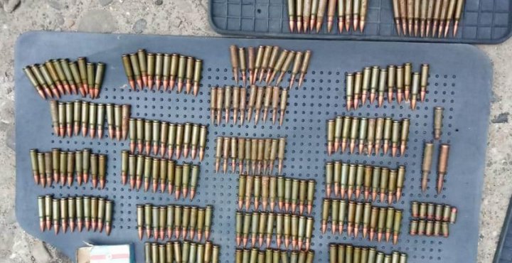 Під час огляду місця схованки поліцейські виявили пакунок із п’ятьма гранатами «РГД-5» та запалами до них, а також, зокрема, понад 240 патронів калібру 7,62 мм. та майже 50 патронів калібру 5.45 мм.