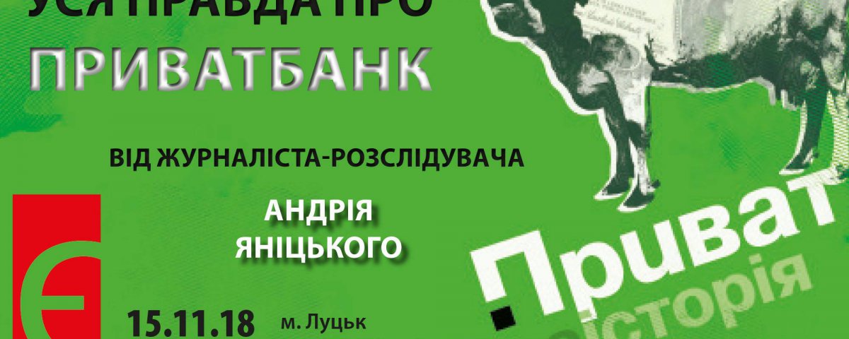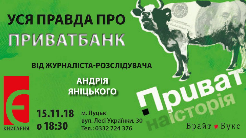 Книгарня «Є» запрошує на презентацію книжки «Приватна історія. Злет і падіння найбільшого банку України», що відбудеться 15 листопада за участю журналіста Андрія Яніцького. Про це повідомляють організатори.