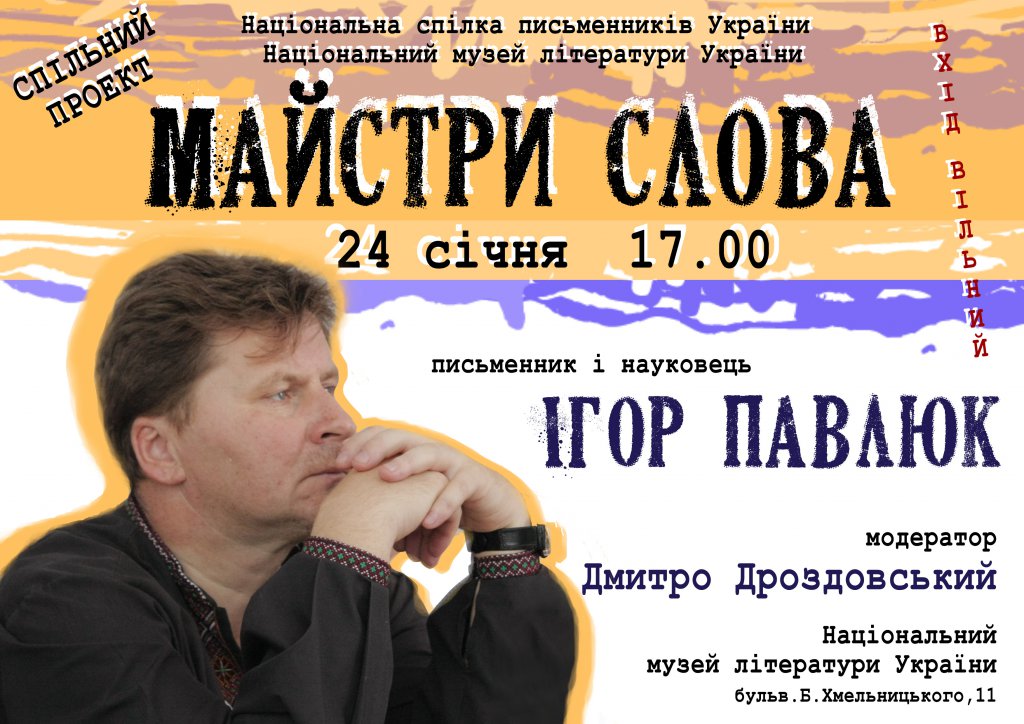 Першою ластівкою у рамках цього Проекту – зустріч із письменником та науковцем Ігорем Павлюком. Модератор – Дмитро Дроздовський.