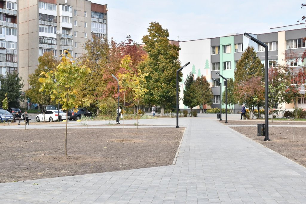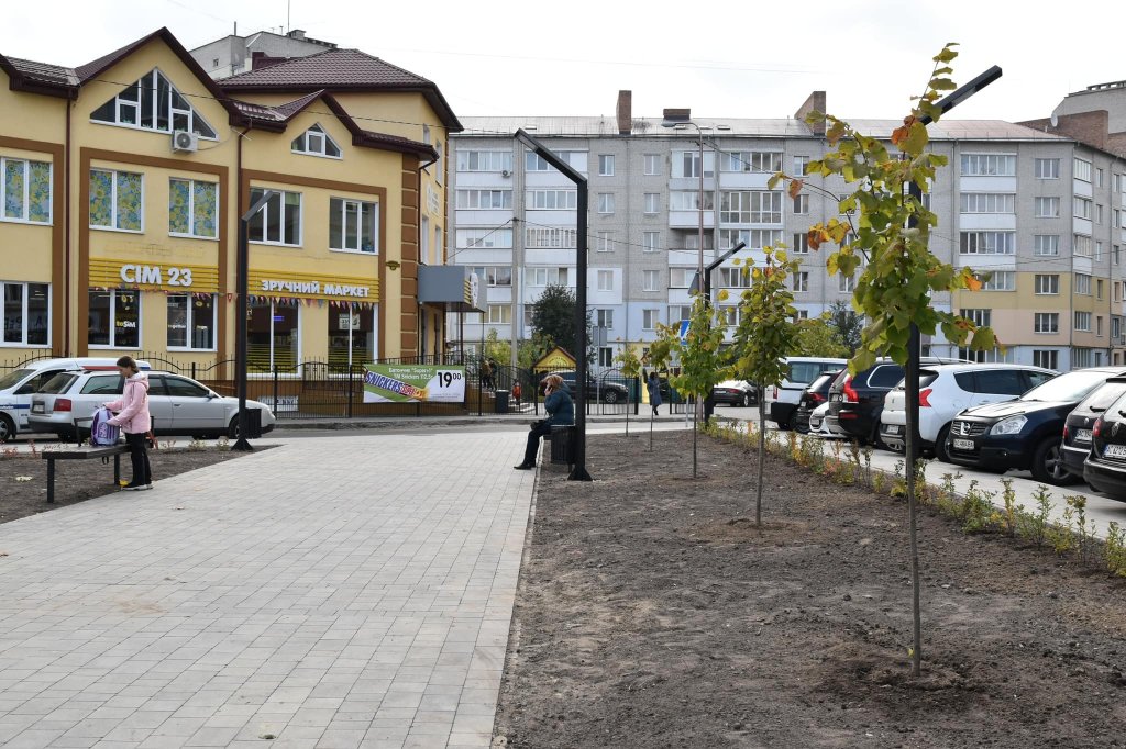 За його словами, у сквері викладена нова тротуарна плитка, облаштовано освітлення, лавки, смітники. Поруч з сквером розширено парковку. Висаджено 18 дерев (10 лип, 6 кленів, 1 катальпа, 1 сумах) та 182 кущі (спірея японська, вейгела, гортензія, горобинник, гібіскус, жимолость блискуча).