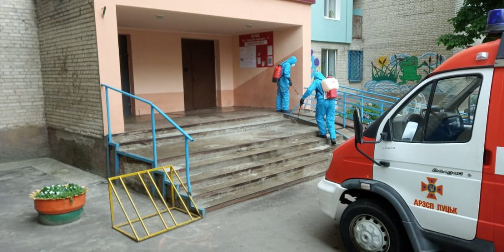 Працівники відділення радіаційно-хімічного захисту аварійно-рятувального загону управління ДСНС у Волинській області продезінфікували будівлі в Луцьку. Про це йдеться на сайті волинських рятувальників.