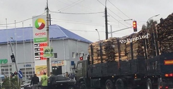 Легковик Volkswagen Passat зіткнувся з вантажівкою, навантаженою деревиною.