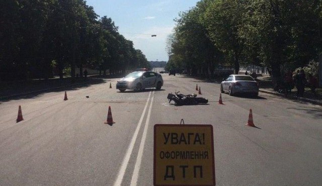 «На вулиці Рівненській водій 1959 року народження, керуючи автомобілем Volkswagen, здійснював поворот ліворуч з правої смуги руху і перетнув горизонтальну розмітку 1.3 та допустив зіткнення з мотоциклом під керуванням водія 1996 року народження, який рухався головною дорогою.