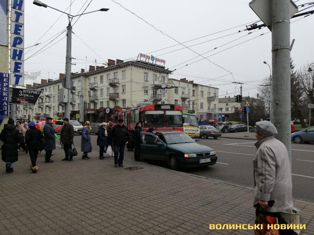 Біля ЦУМу, на виїзді з вулиці Паркової на проспект Волі зіткнулися тролейбус та Opel Vectra.