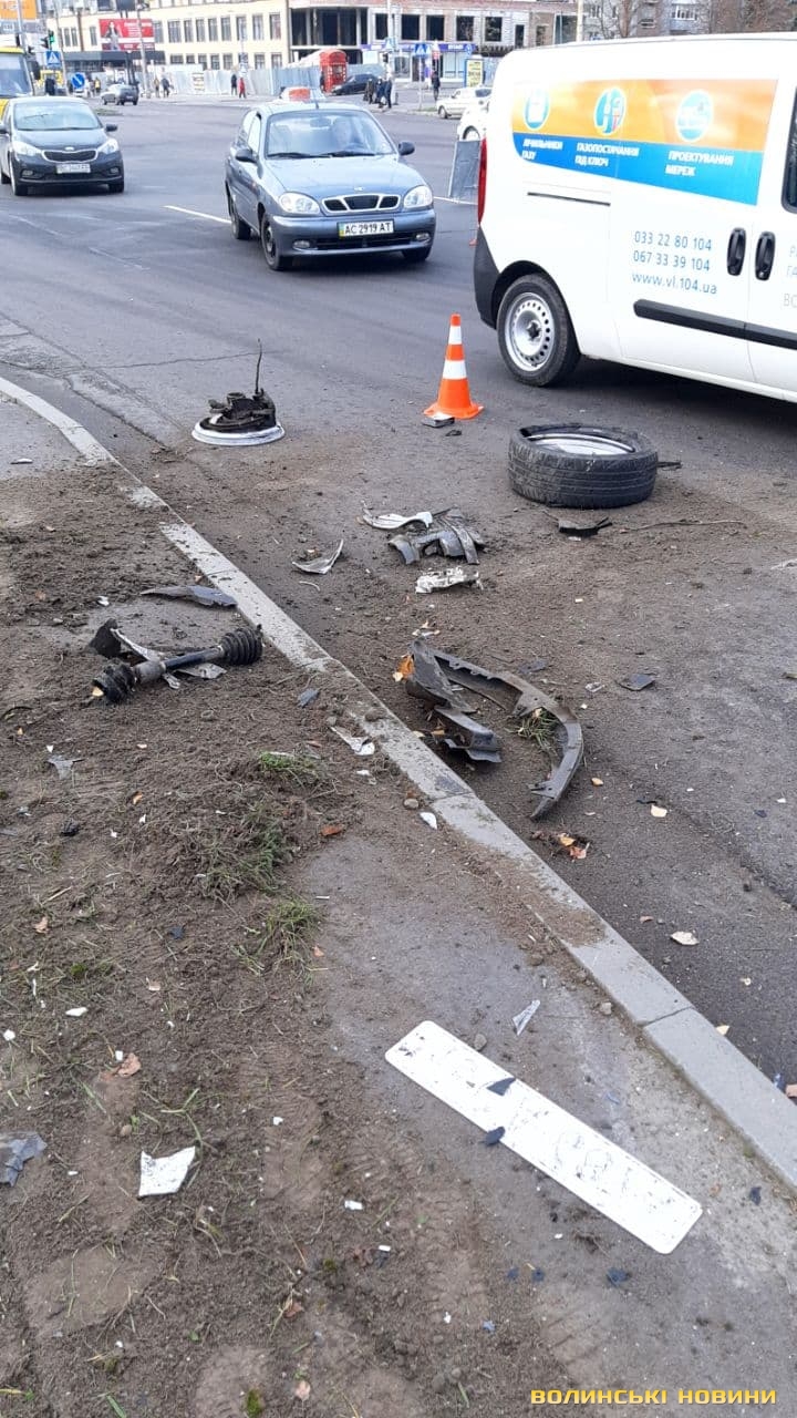Внаслідок ДТП на щастя, ніхто не постраждав. В автомобіля розбитий капот та відірвало колесо.