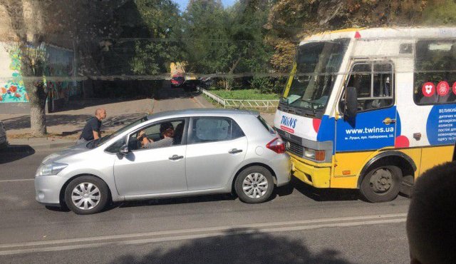 Водій маршрутки, ймовірно, не дотримавшись дистанції, влетів у легковик «Тойота», який рухався у попутному напрямку.