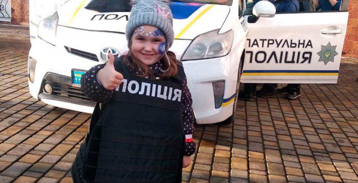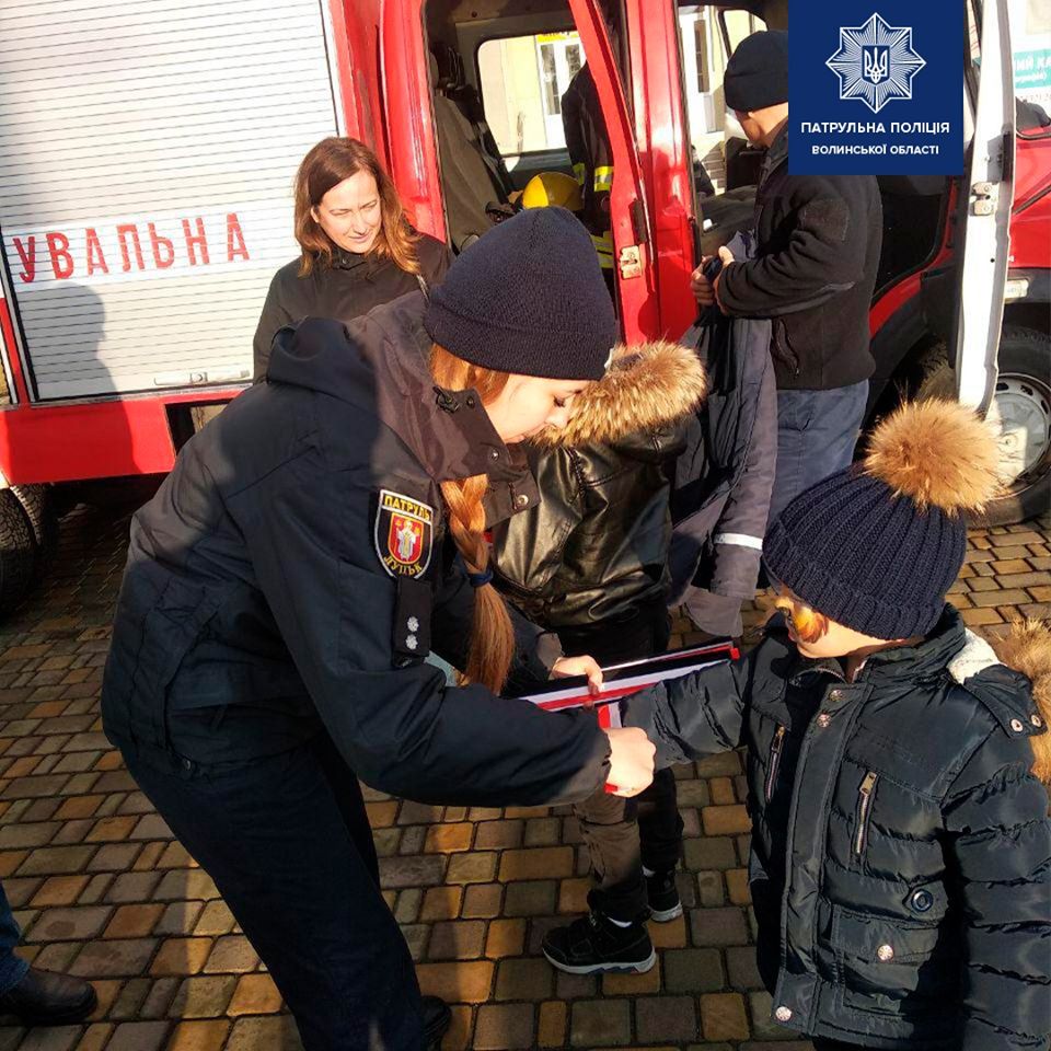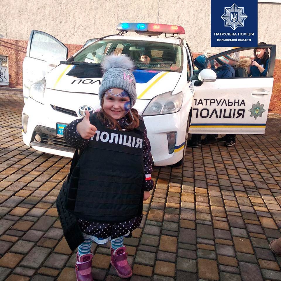 “Учора, на території медколеджу, з дітьми, чиї батьки загинули на війні і Майдані, зустрілись патрульні поліцейські. Малюкам показали спецзасоби та дозволили посидіти в службовій автівці. Також їм подарували світловідбивні браслети, аби були помітними в темну пору доби.
