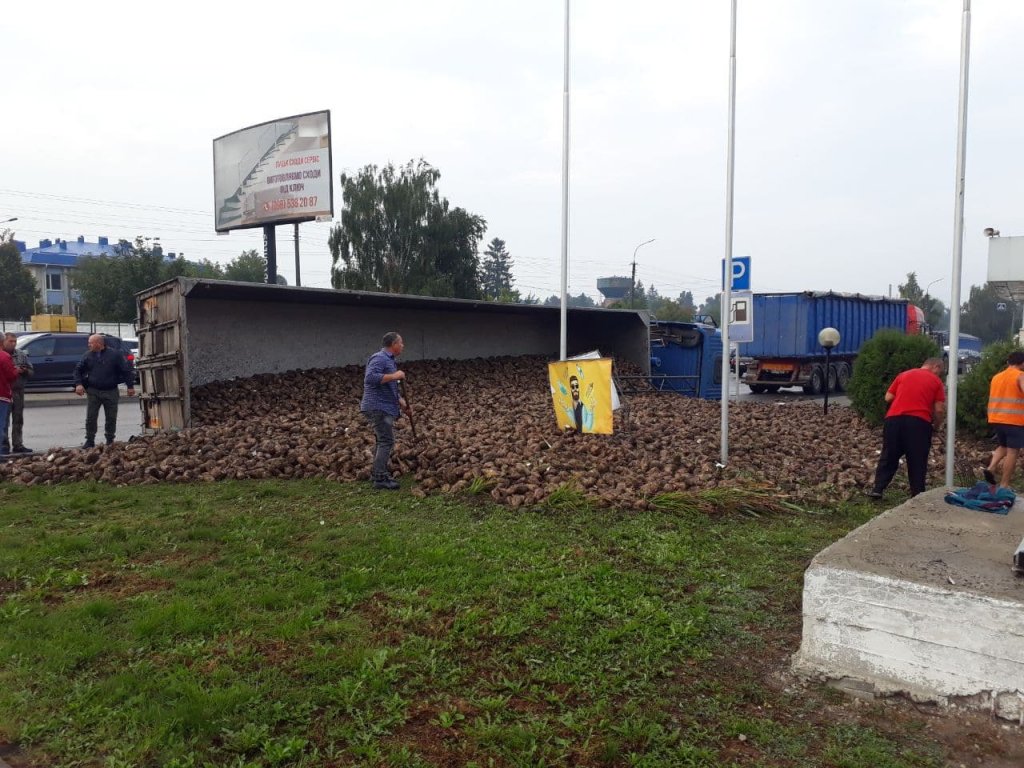 У результаті ДТП буряки розсипалися по узбіччю.