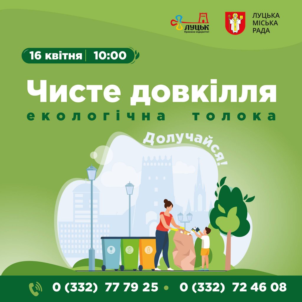 Рукавиці, сміттєві пакети та все необхідне буде на місці толоки. Додаткову інформацію можна дізнатися за телефонами: (0332) 777 925, 724 608.