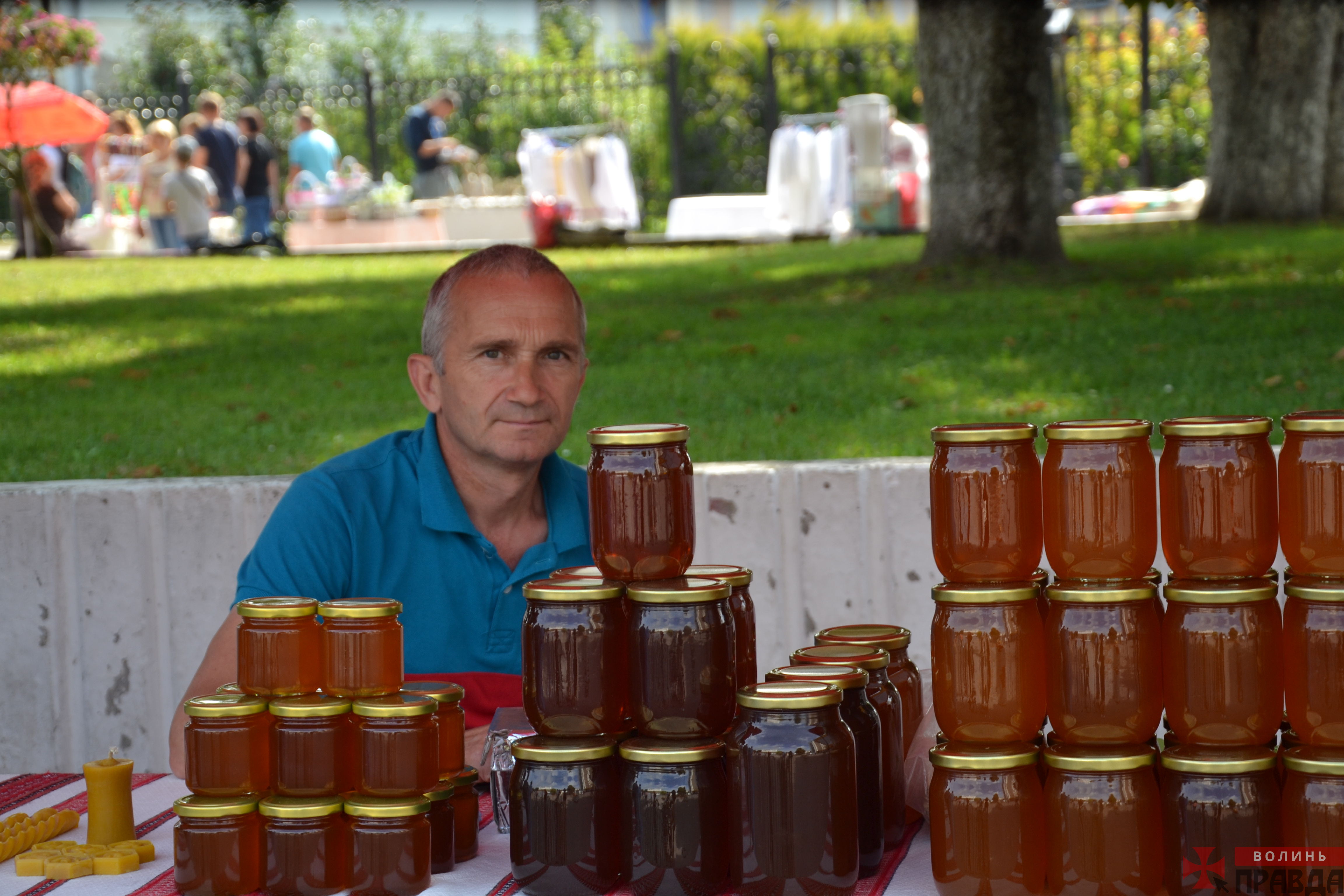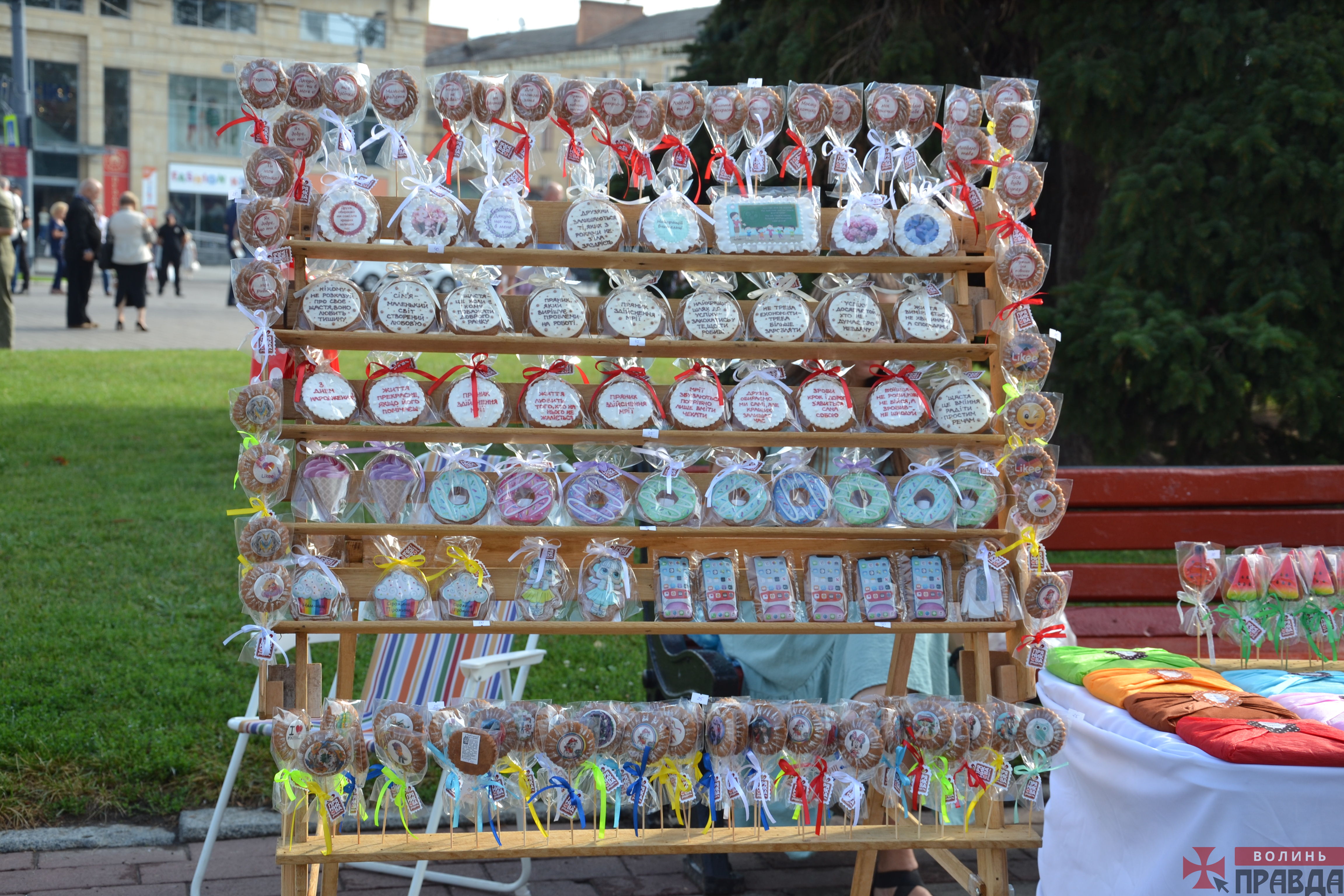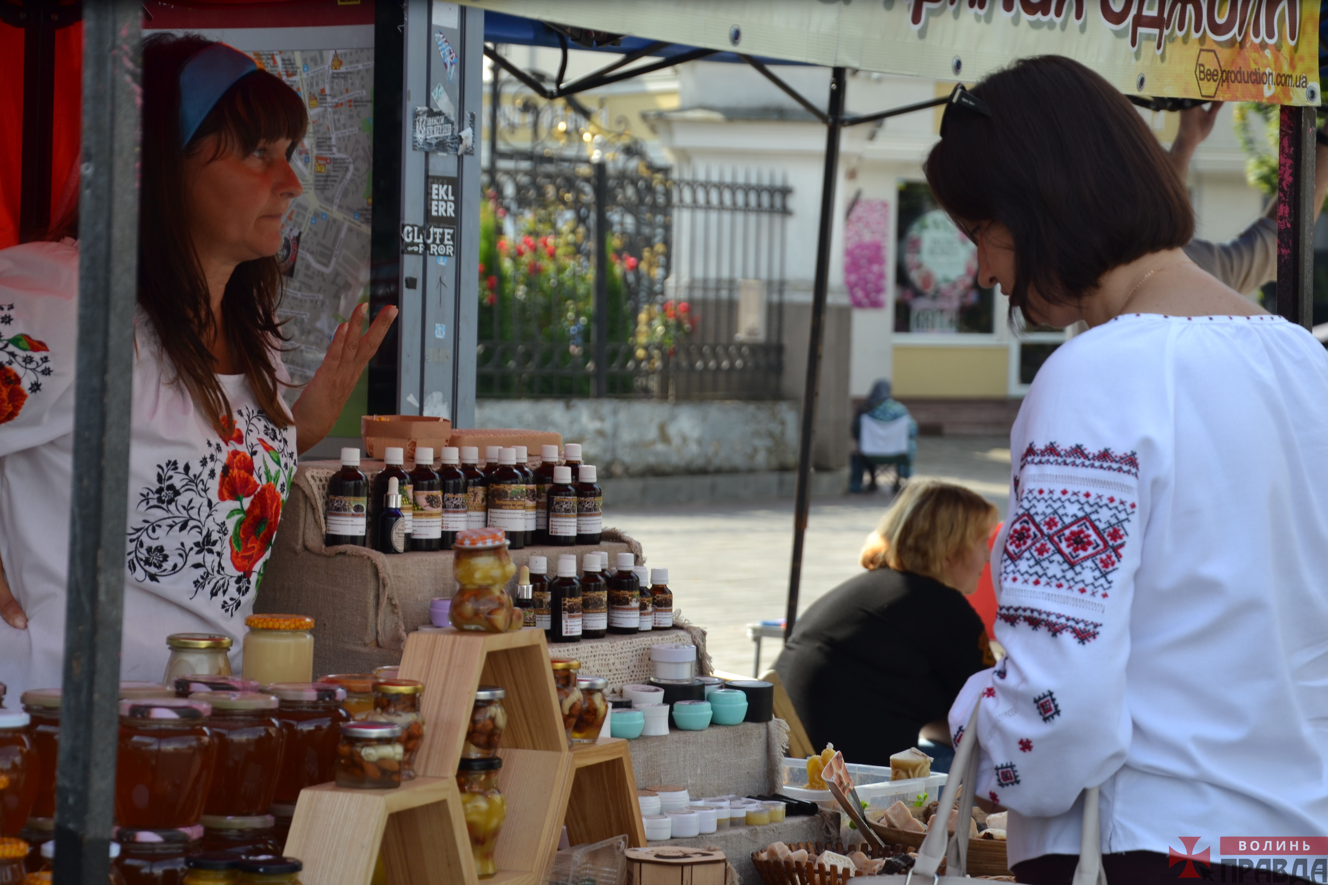 У Луцьку на Театральному майдані з нагоди Дня Незалежності України відбулася святкова ярмарка. На цьому дійстві продавали святкові атрибути та медові солодощі.