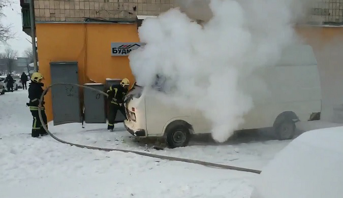 У понеділок, 8 лютого, на вулиці Рівненській у Луцьку загорівся мікроавтобус білого кольору, припаркований біля магазину «Будмайстер-Про».