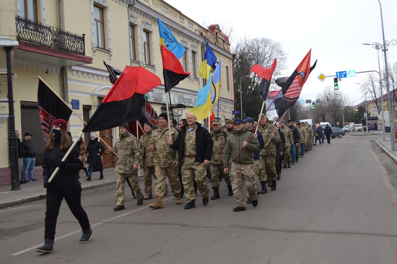 Під звуки муніципального духового оркестру колона пройшла від парку Тараса Шевченка до пам’ятника борцям за волю України. Першими по праву у ній крокували ветерани добровольчих батальйонів.