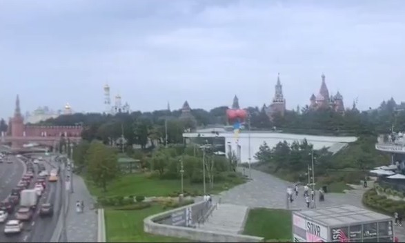 «Тим часом в Москві», — підписала Гришина відео на якому український прапор на повітряних кулях запускають в небо біля Кремля.
