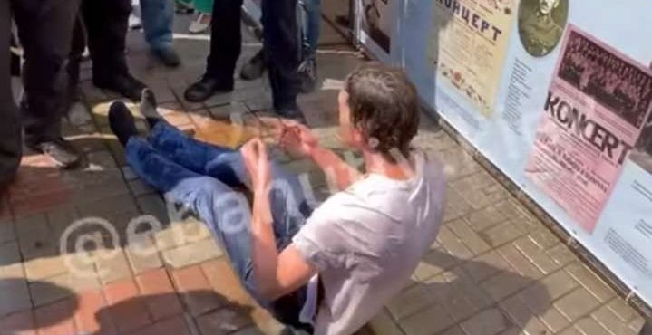 У соціальних мережах розповсюдили відео, де на Хрещатику чоловік вирішив підпалити сам себе. На відео можна помітити, що люди вже облили його водою з пляшок. Про це повідомляє УНН.