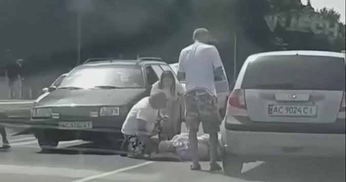 На записі видно, що на «зебрі» лежить людина, їй намагаються надати допомогу.