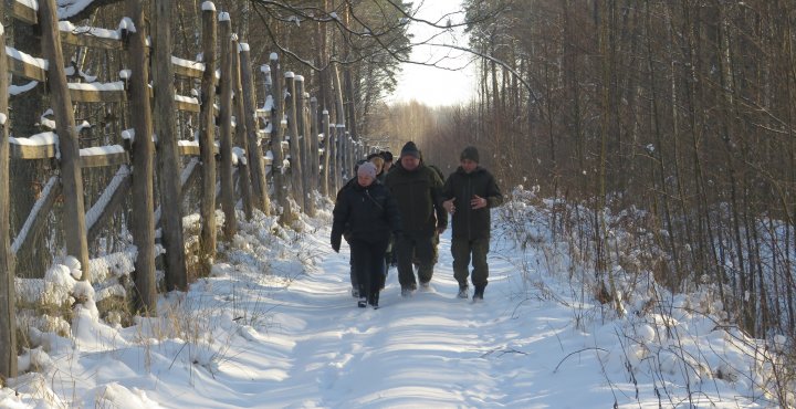 Зима, засніжений ліс, морозне повітря. На снігу «читаються» сліди ранішнього пересування зубрів з підгодівлі в затишні хащі на місця лежанок. Самих тварин не видно – вони старанно уникають зустрічі з нами, проте зі слідів бачимо, що в одному місці проходило стадо з восьми зубрів. Один слід маленький – цьогорічний приплід, пояснюють наші інспектори.