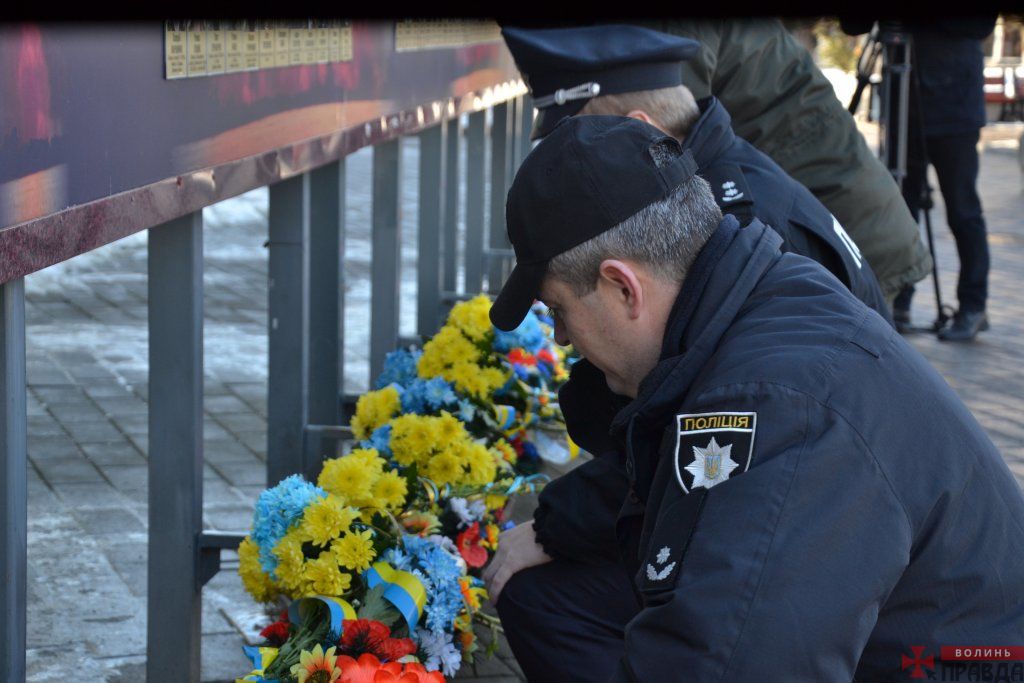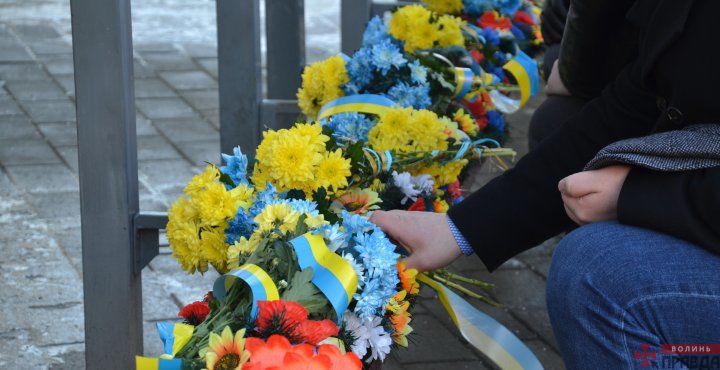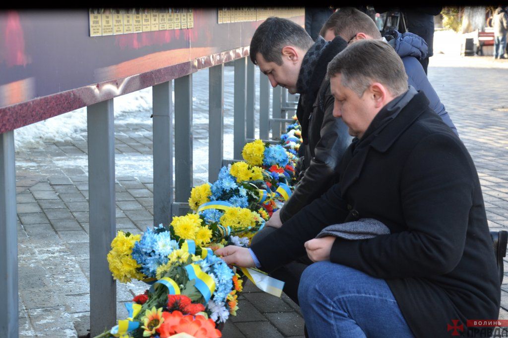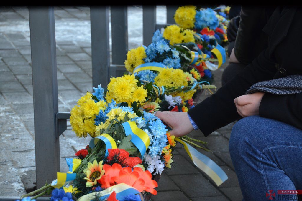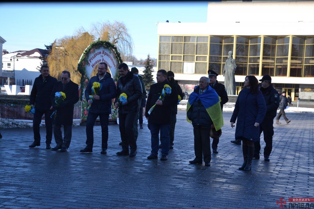 У Луцьку на Театральному майдані відбулося покладання квітів до пам’ятного фотостенду «Герої Небесої Сотні – Загинули за єдність України» з нагоди Дня Соборності України.