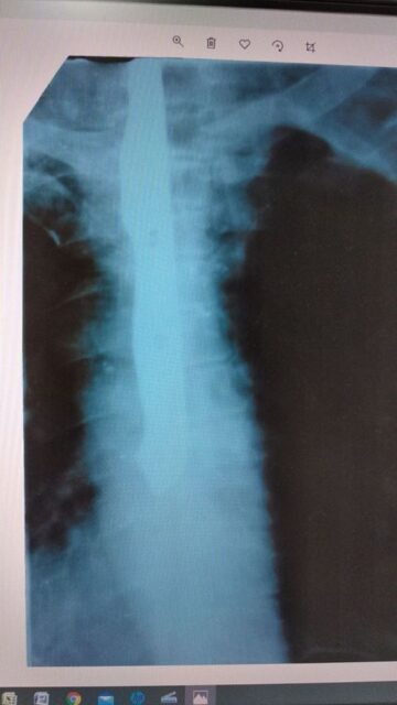 Здивуванню, навіть самих досвідчених фахівців, не було меж, так як при обстеженні, на рентген знімку, у стравоході простежувався довгий тонкий предмет, схожий на ніж.