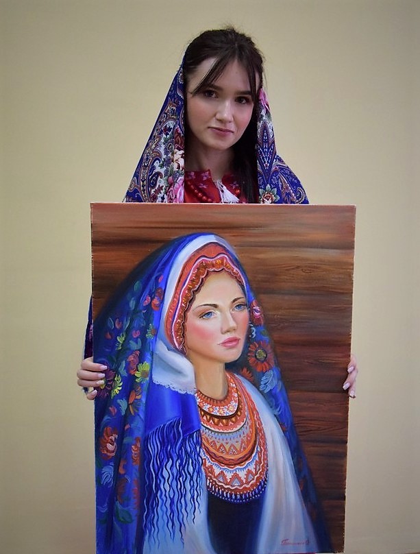 «Мені сподобалося полотно на якому зображений портрет жінки з Галичини. Чітко виражені риси обличчя та впевнений погляд виділяють її з-поміж інших. Тому сьогодні я спробувала відтворити схожий образ», – поділилася враженнями від дійства прикордонниця Марина.