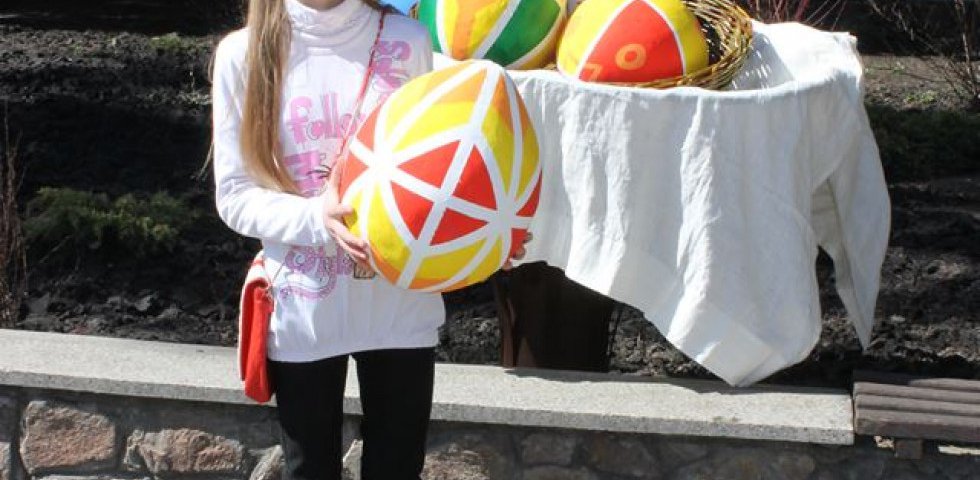 Інсталяція являє собою кошик з писанками, які виконані в техніці Пап’є-Маше (техніка з використанням паперу, – авт.).