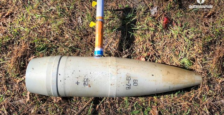 У пресслужбі концерну опублікували два фото з випробувань цього пристрою на артилерійському боєприпасі калібру 152 мм і протитанковій міні.