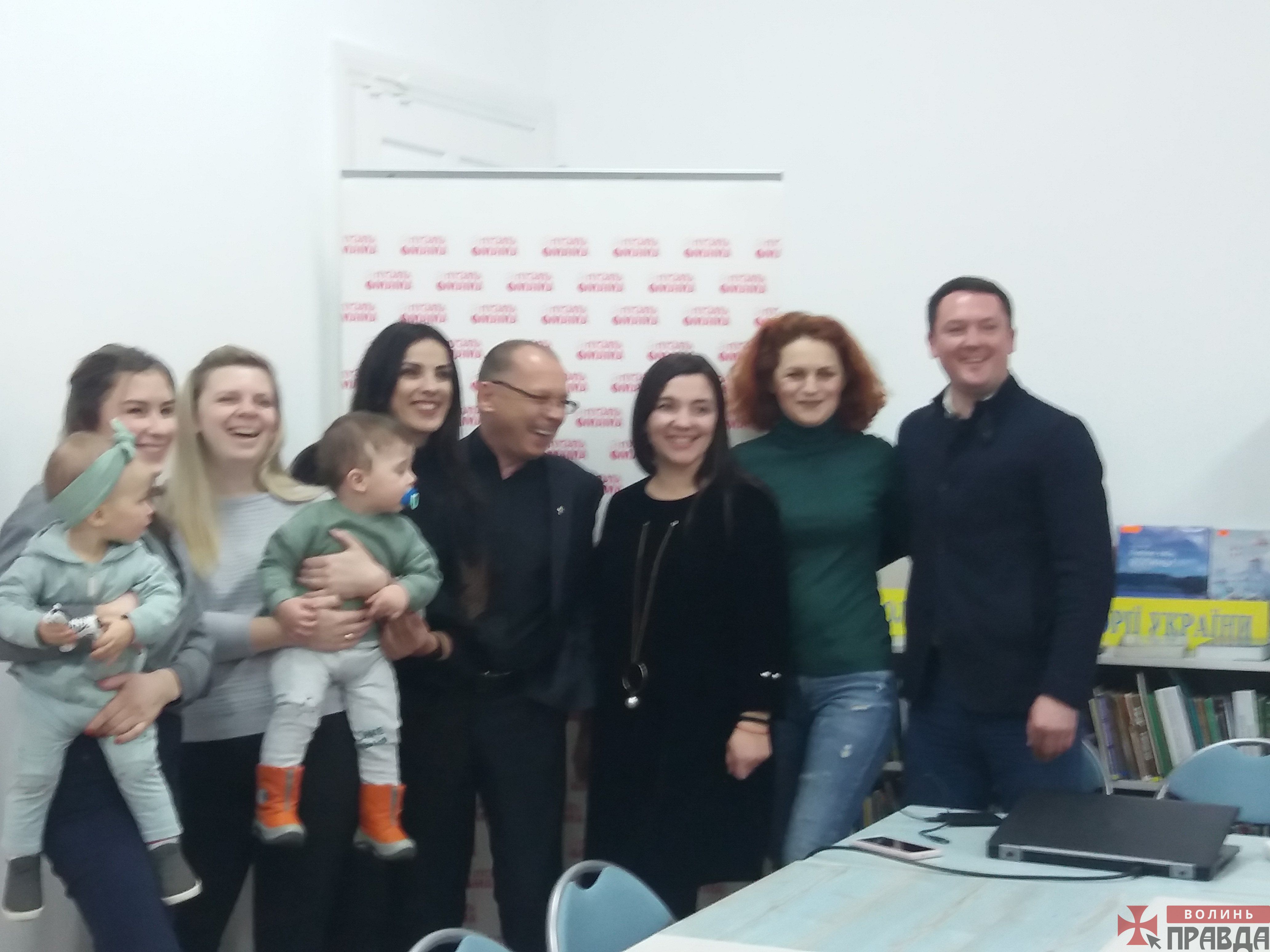 На презентацію завітали співзасновники та журналісти з Рівного Оксана Кравець та Олександр Курзик і Сергій Сулімовський – рівненський акушер-гінеколог, колишній головний лікар Рівненського пологового будинку, віднедавна працює в перинатальному центрі Луцька.