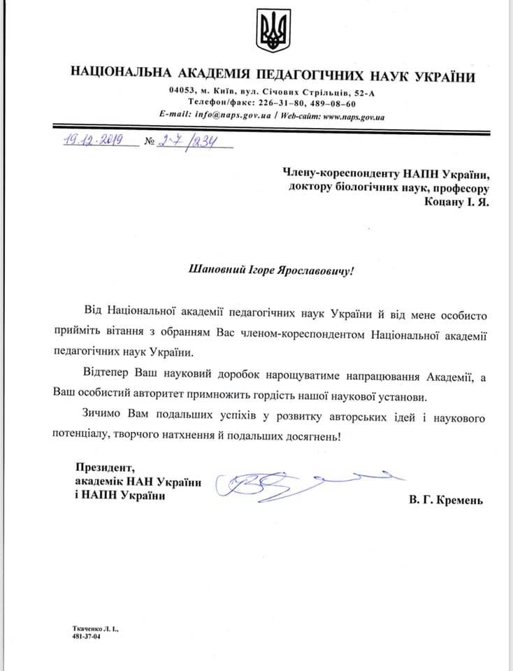 «Щиро дякую президенту НАПН України Василю Кременю, усім шановним колегам та друзям за високу довіру!» – ідеться у дописі Ігоря Ярославовича.